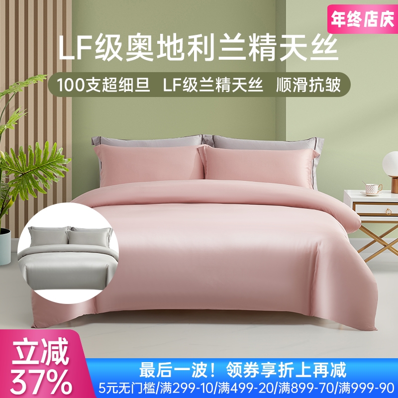 ¥998臻品100支兰精天丝素色四件套(轻柔粉)