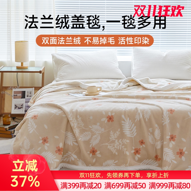 法兰绒印花保暖盖毯(叶影)