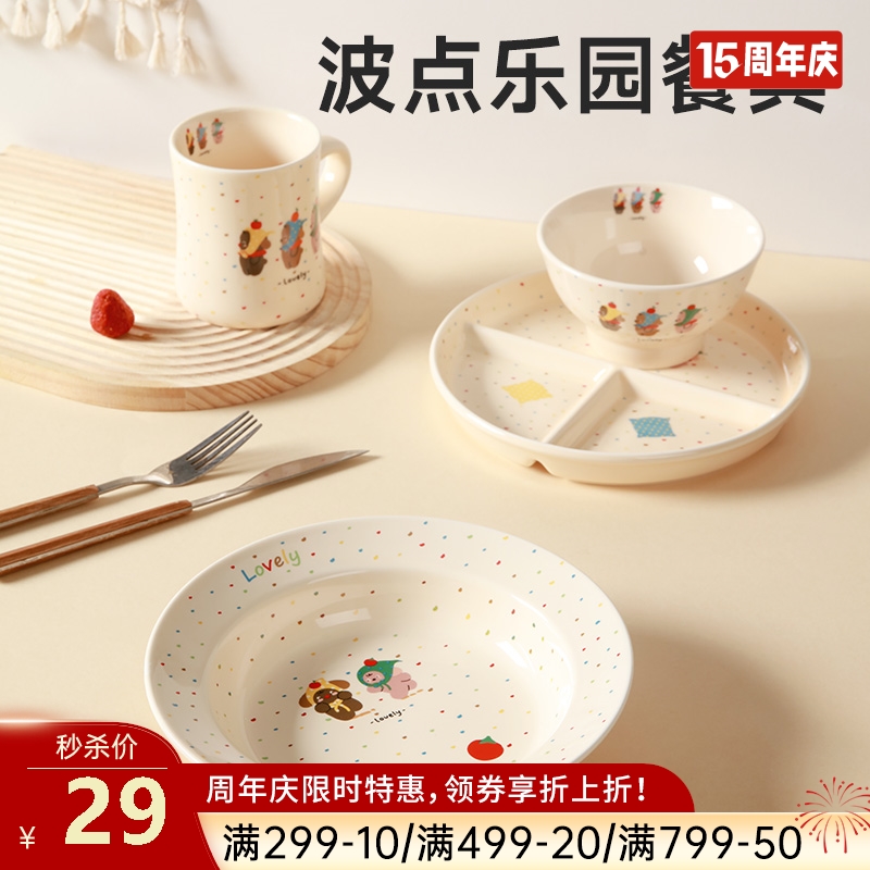 ¥35高脚防烫陶瓷餐具(波点乐园)