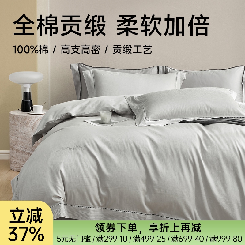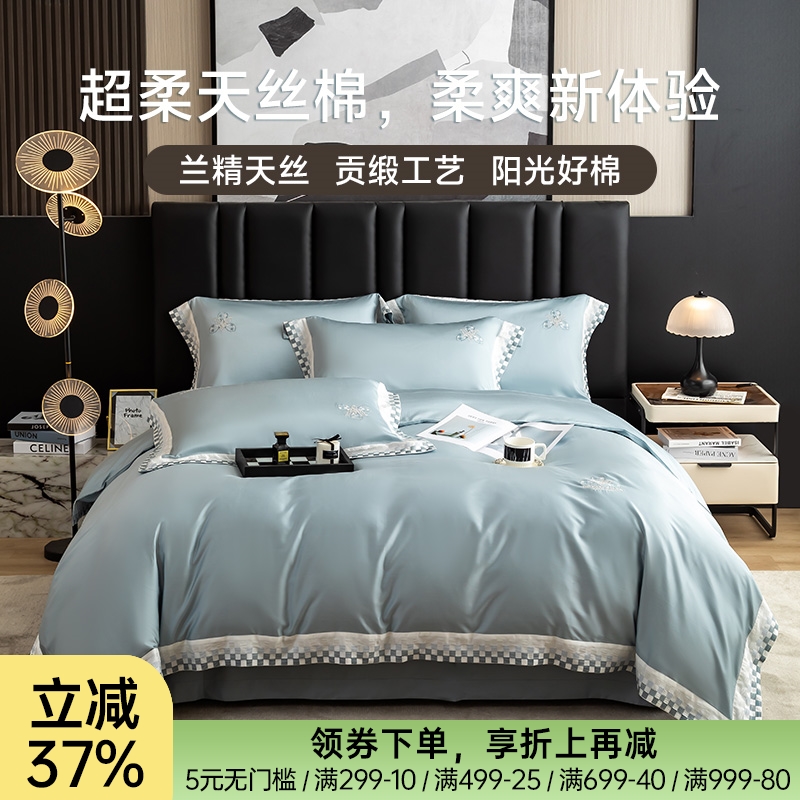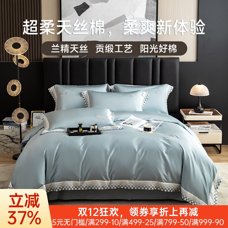 ¥998臻品天丝棉花边刺绣四件套(弗洛德)