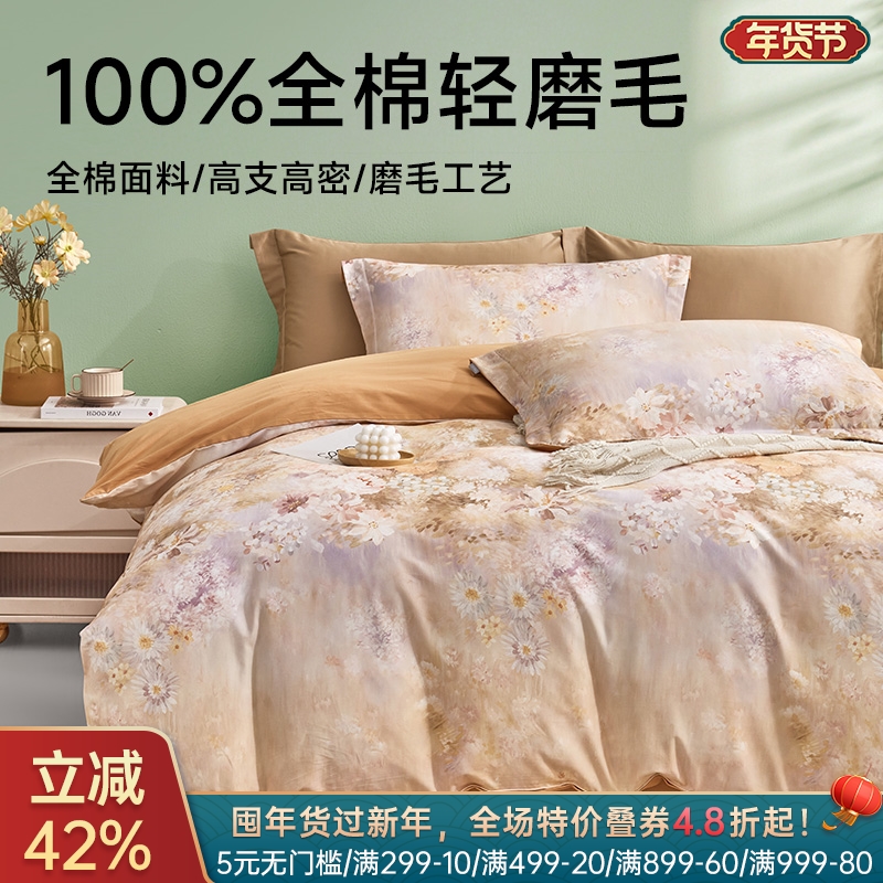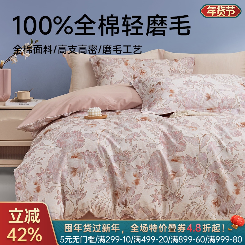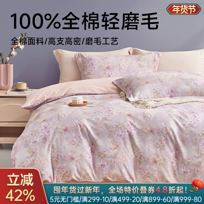 ¥729艾阳绒抗菌磨毛四件套(云想衣裳花想容)