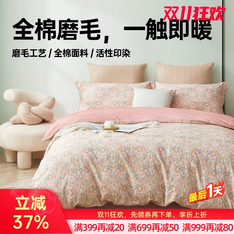¥189全棉舒绒磨毛印花拆件(秘密花园)