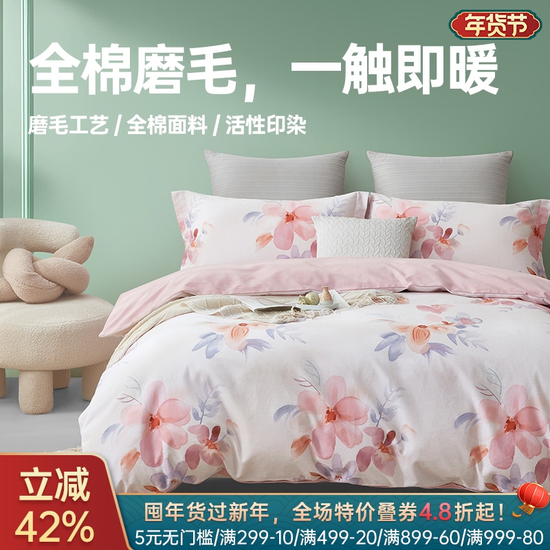 ¥85全棉舒绒磨毛印花拆件(花溪豆沙)