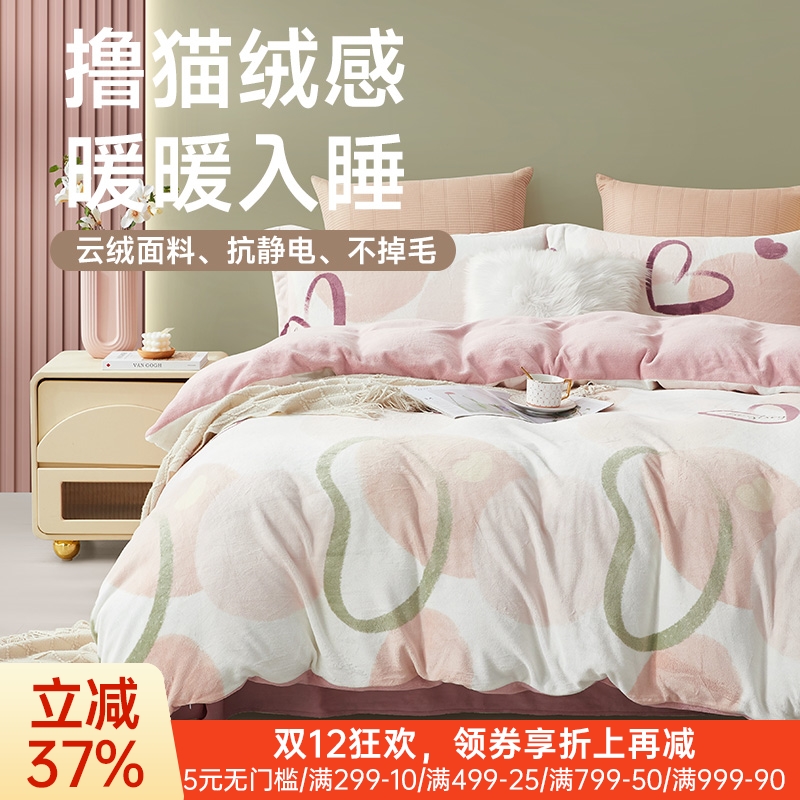 ¥709云绒倍暖印花四件套(心心有约)