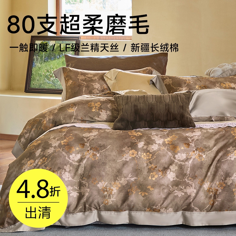 ¥1698臻品80支天丝棉磨毛四件套(凤栖枝头)