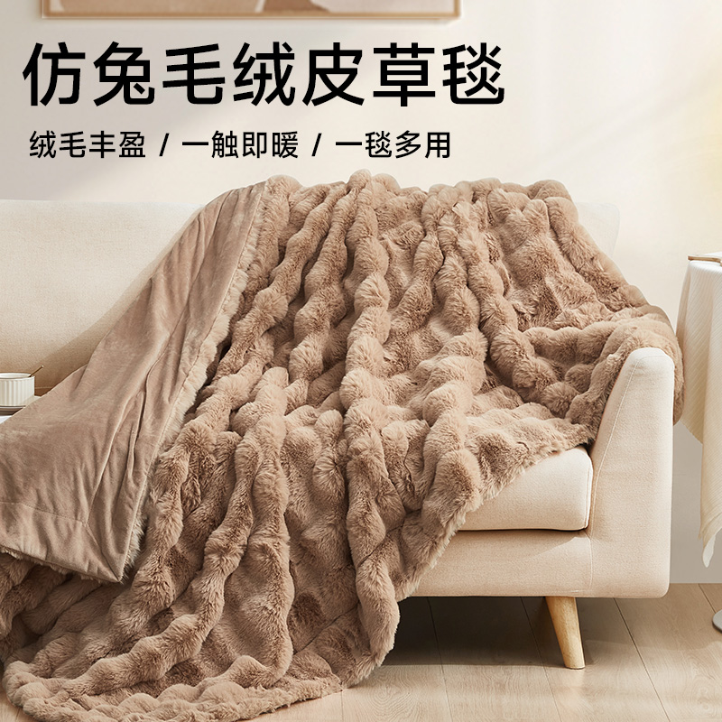 兔毛绒加厚多功能毯-2024