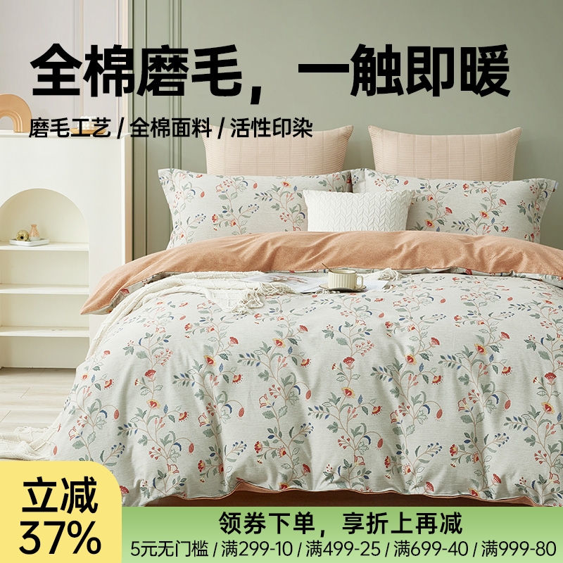 ¥269全棉舒绒磨毛印花拆件(澜汐)