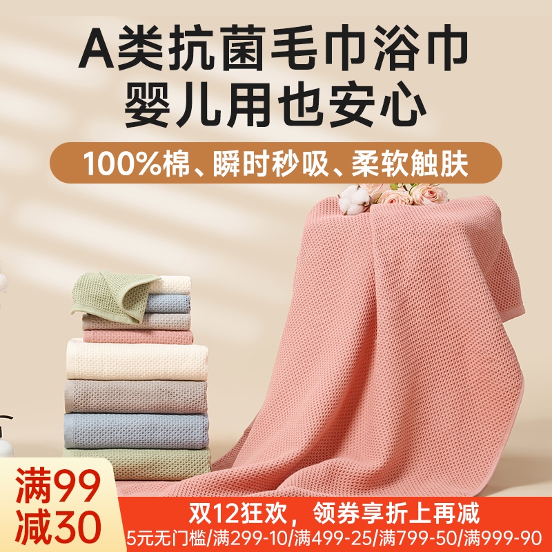 云柔亲肤全棉华夫格毛浴巾