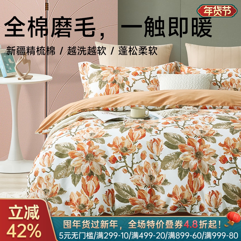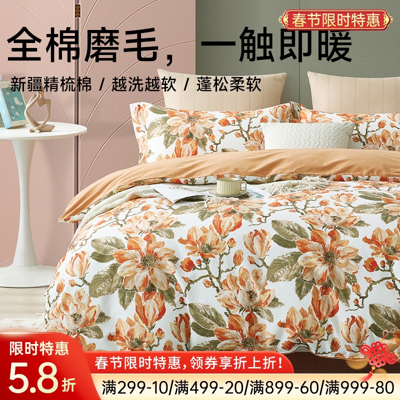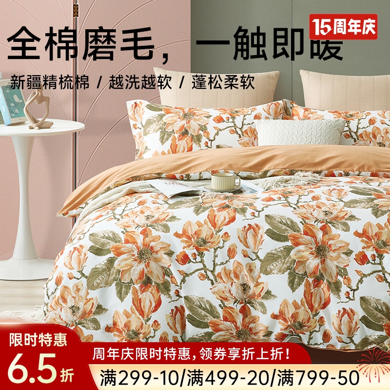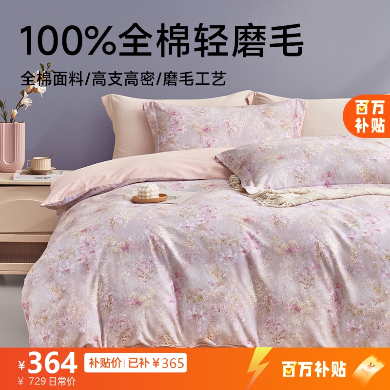 ¥729醇净舒绒全棉磨毛四件套(西棠花海)