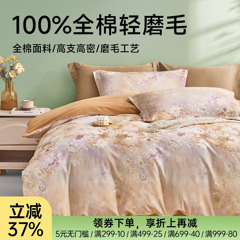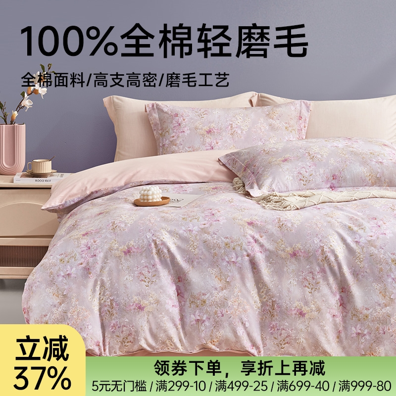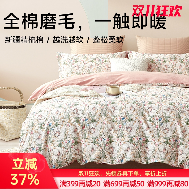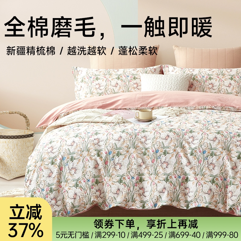 ¥729醇净舒绒全棉磨毛四件套(苏怡花园)