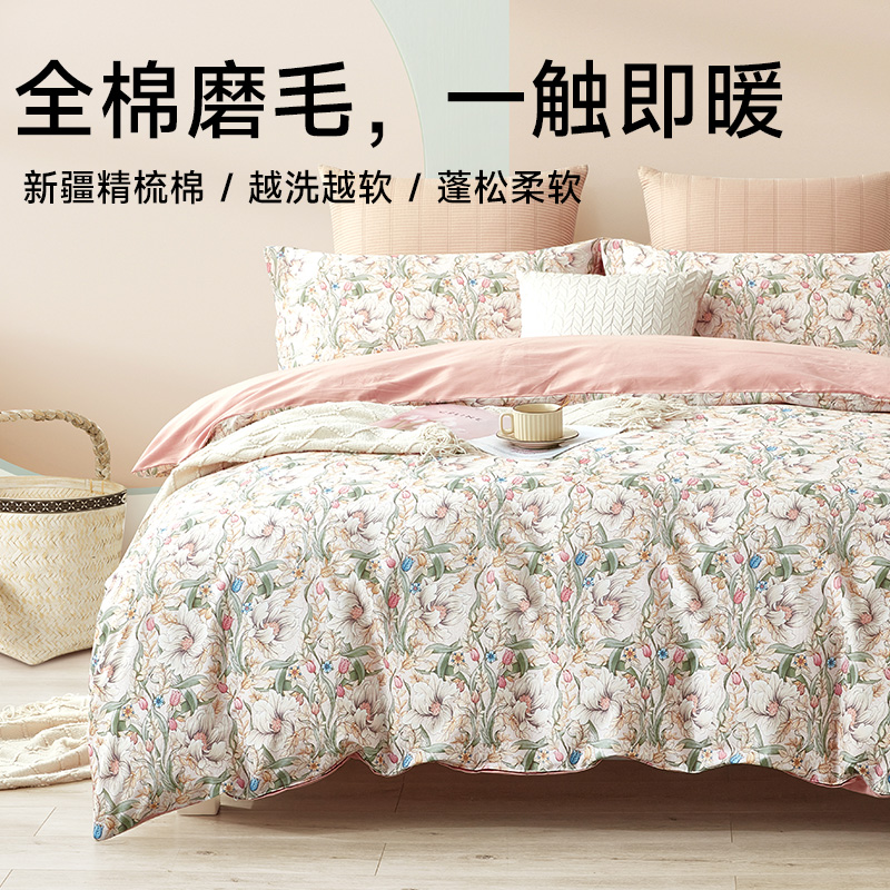 ¥729每满299减30醇净舒绒全棉磨毛四件套(苏怡花园)