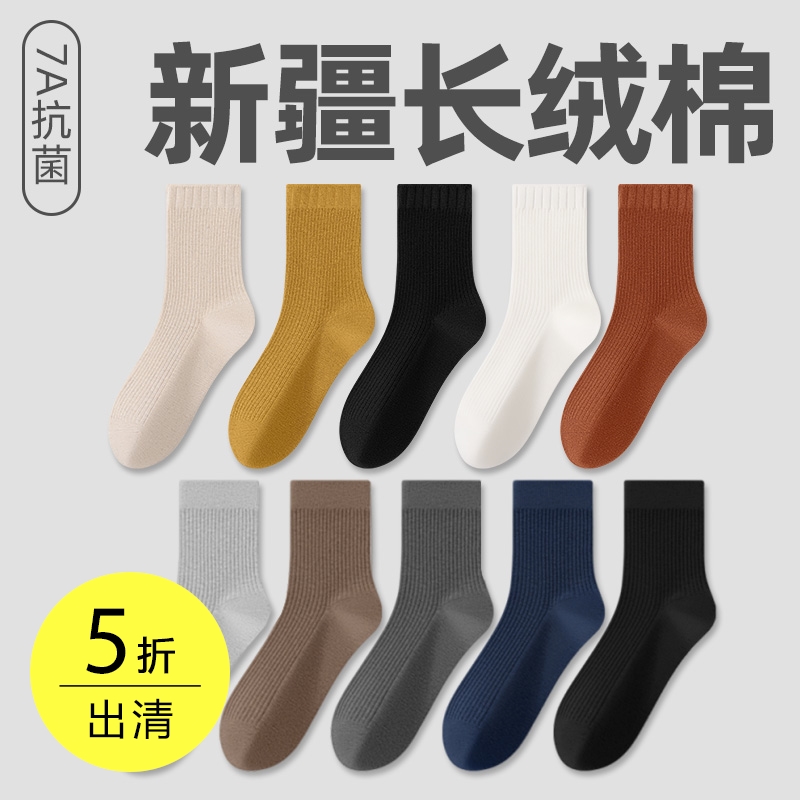 ¥10双针长绒棉中筒袜