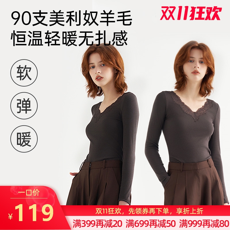 羊毛蕾丝V领打底衫