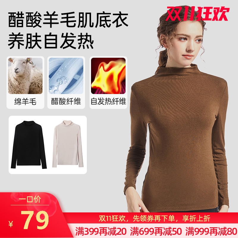 女士醋酸羊毛高领打底衫