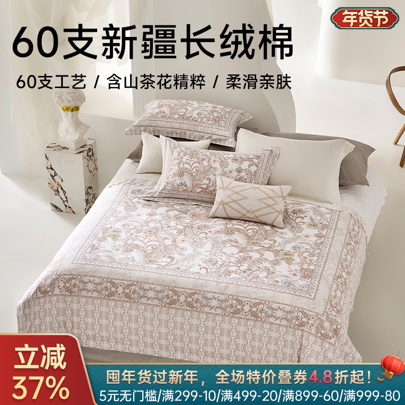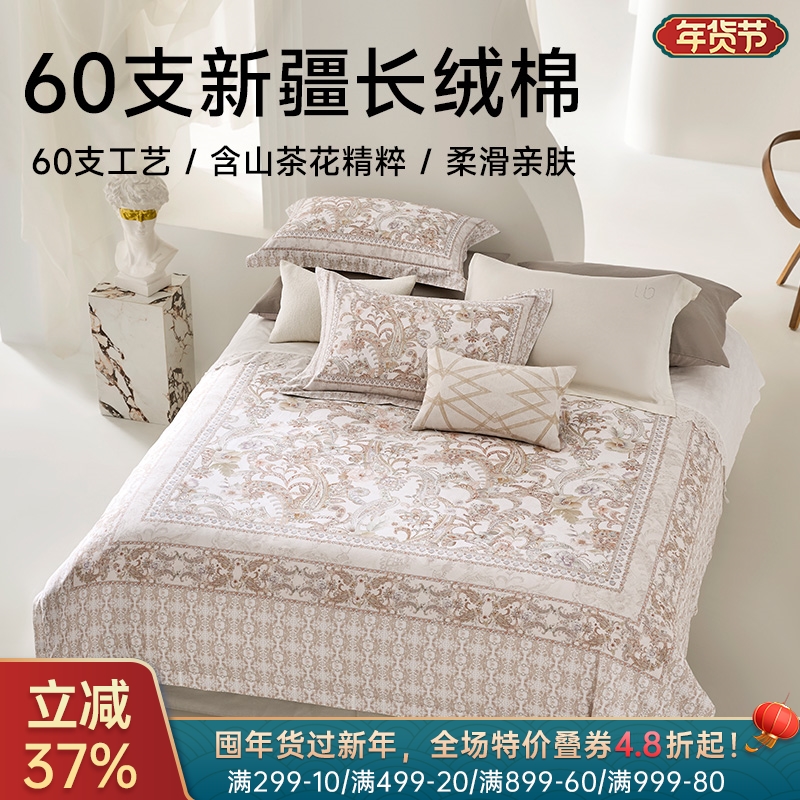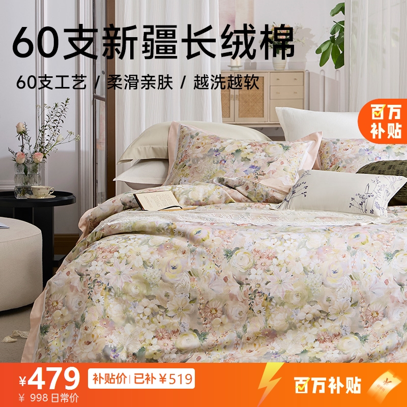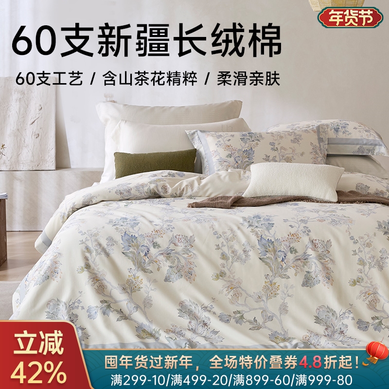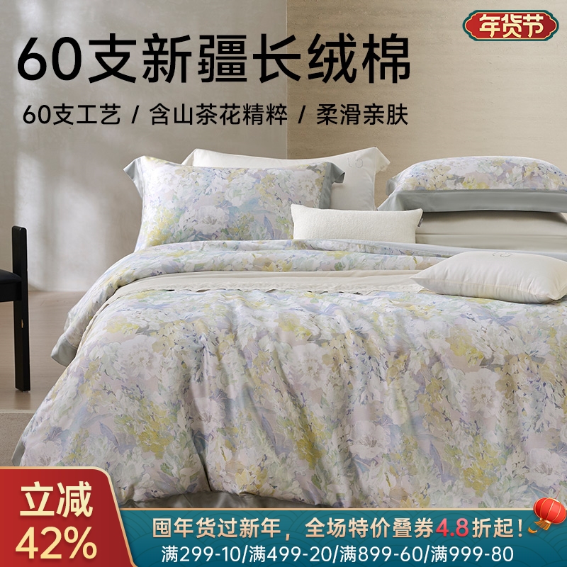 ¥998新疆长绒棉60支印花四件套(轻烟)