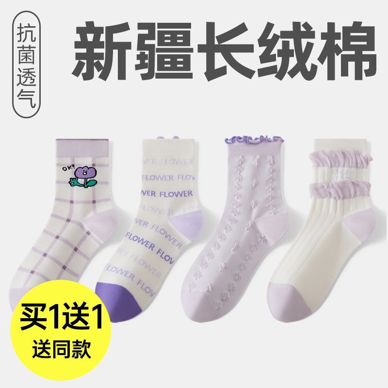 女士精梳棉抗菌中筒袜(紫色)