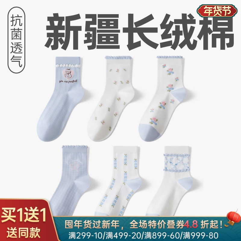 女士精梳棉抗菌中筒袜(蓝色)