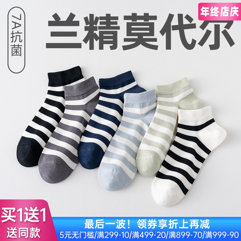 男士云感莫代尔抗菌船袜(横条)