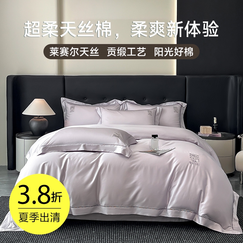 臻品天丝棉轻奢刺绣四件套(沐色)