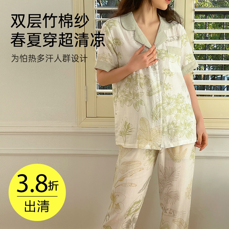 ¥89竹棉双层纱睡衣(清雅荷花)