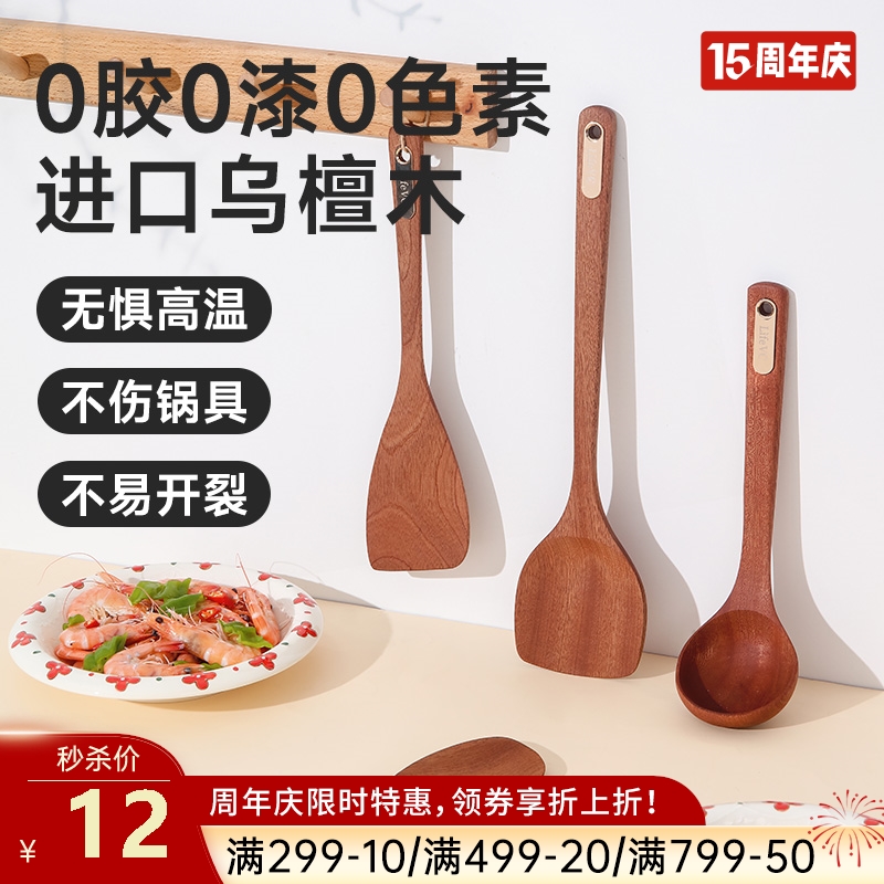无漆无胶进口乌檀木锅铲