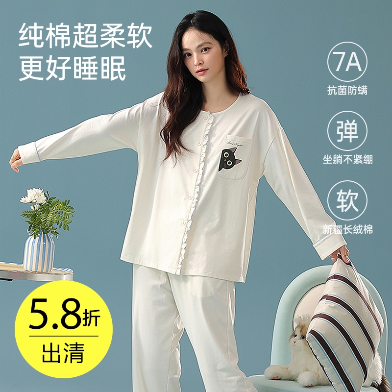 ¥99女士全棉抗菌防螨睡衣(素色黑猫)
