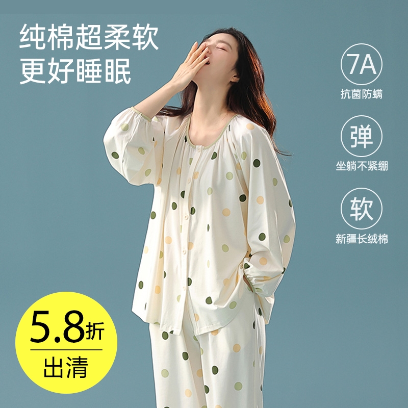 女士全棉抗菌防螨睡衣(彩色波点)