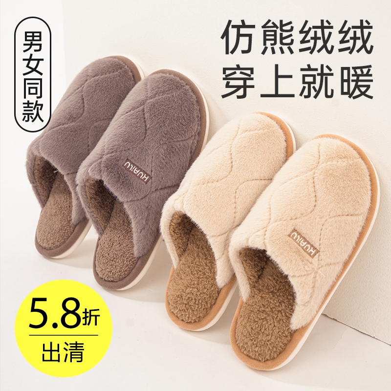 英伦毛绒保暖拖鞋