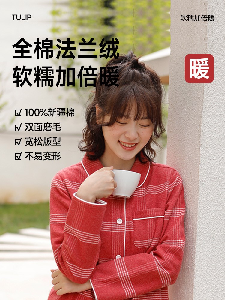 女士全棉法兰绒家居服(格子)