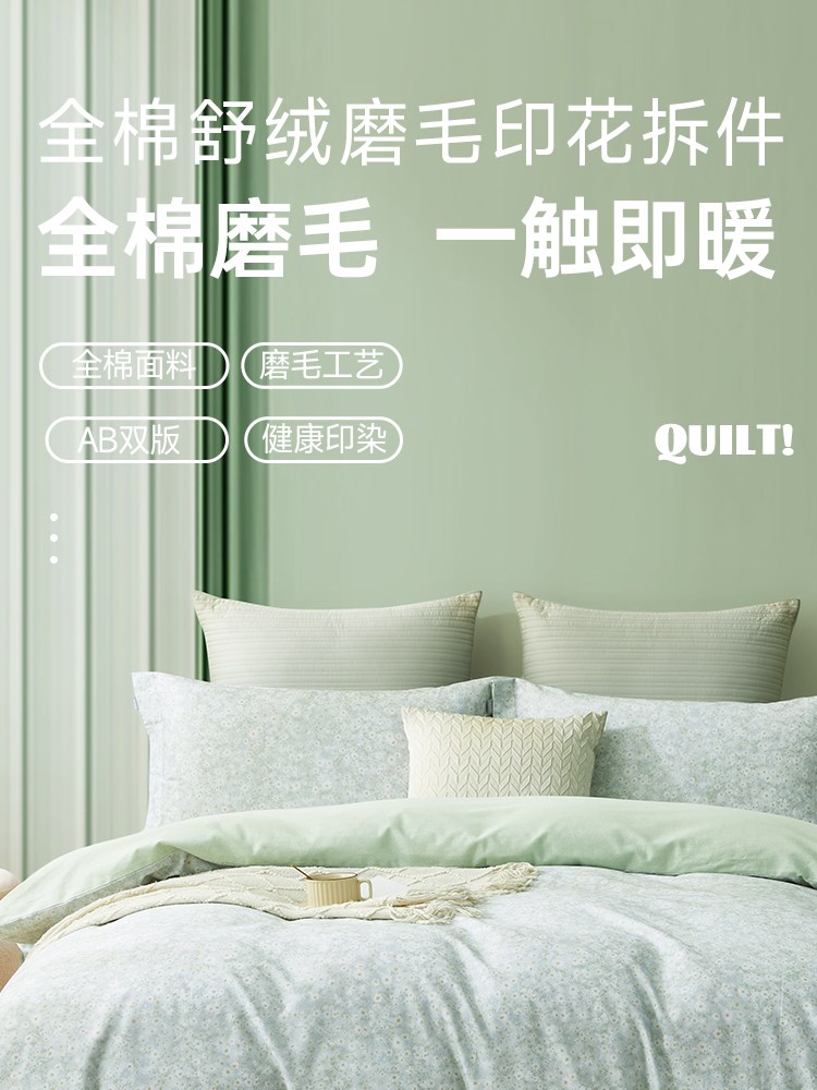 ¥85新全棉舒绒磨毛肌理拆件(米诺)-绿