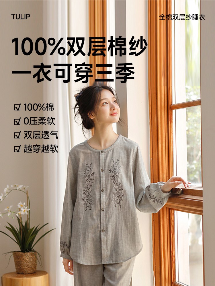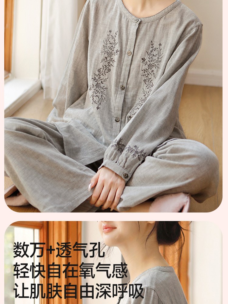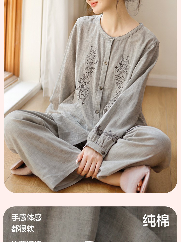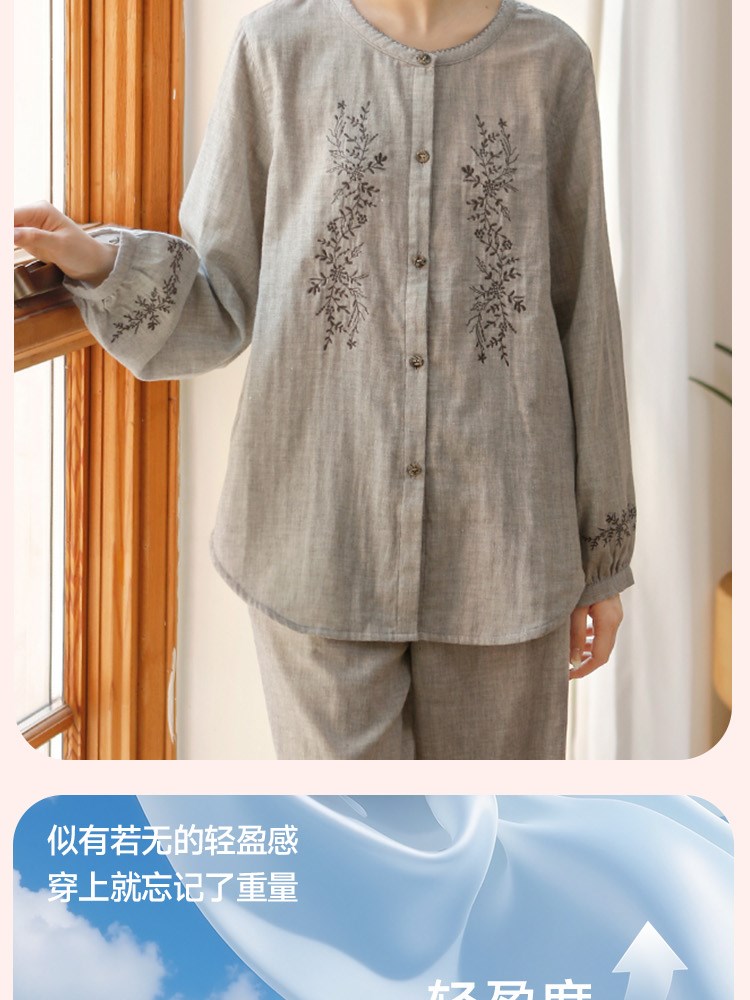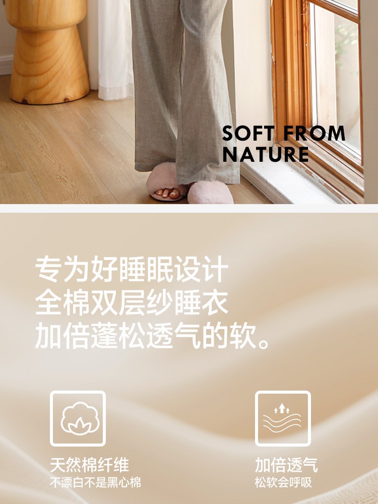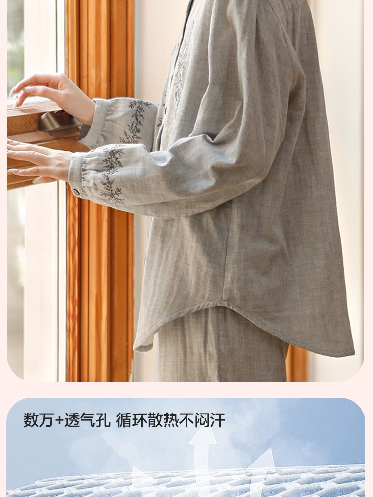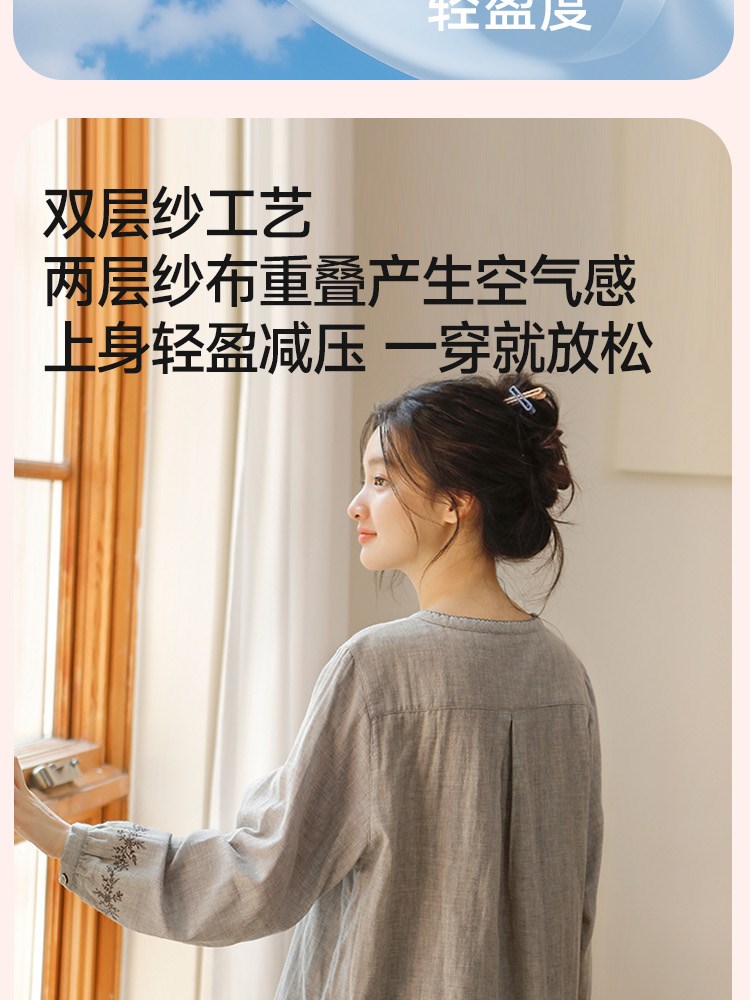¥99新女士超柔双层纱睡衣(灰色藤蔓)