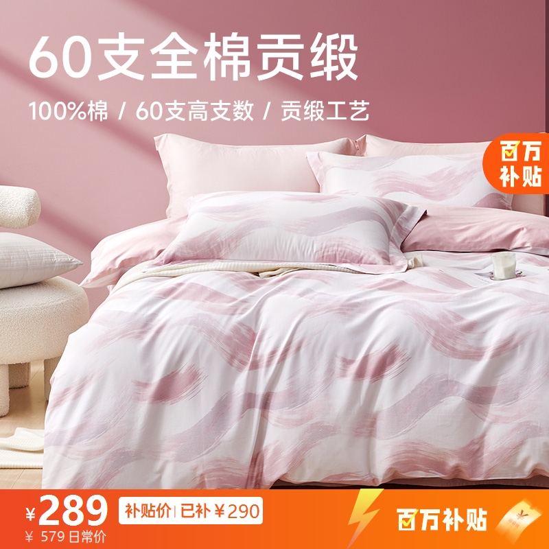 ¥57960支全棉贡缎四件套(烟霞)