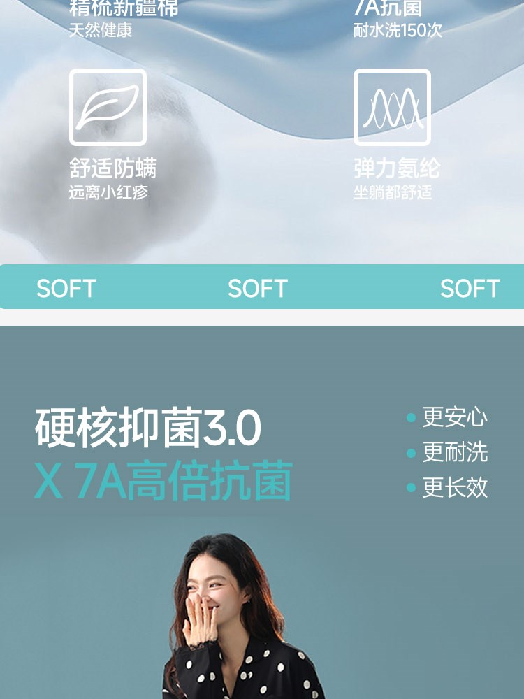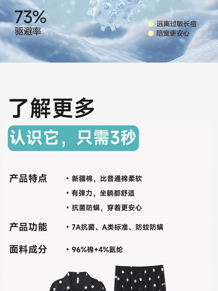 女士全棉抗菌防螨睡衣(love you)