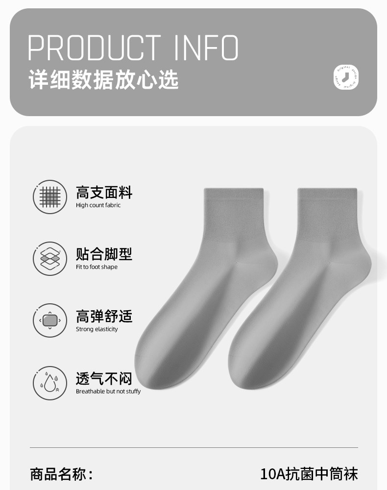 男士香薰中筒袜(素色)