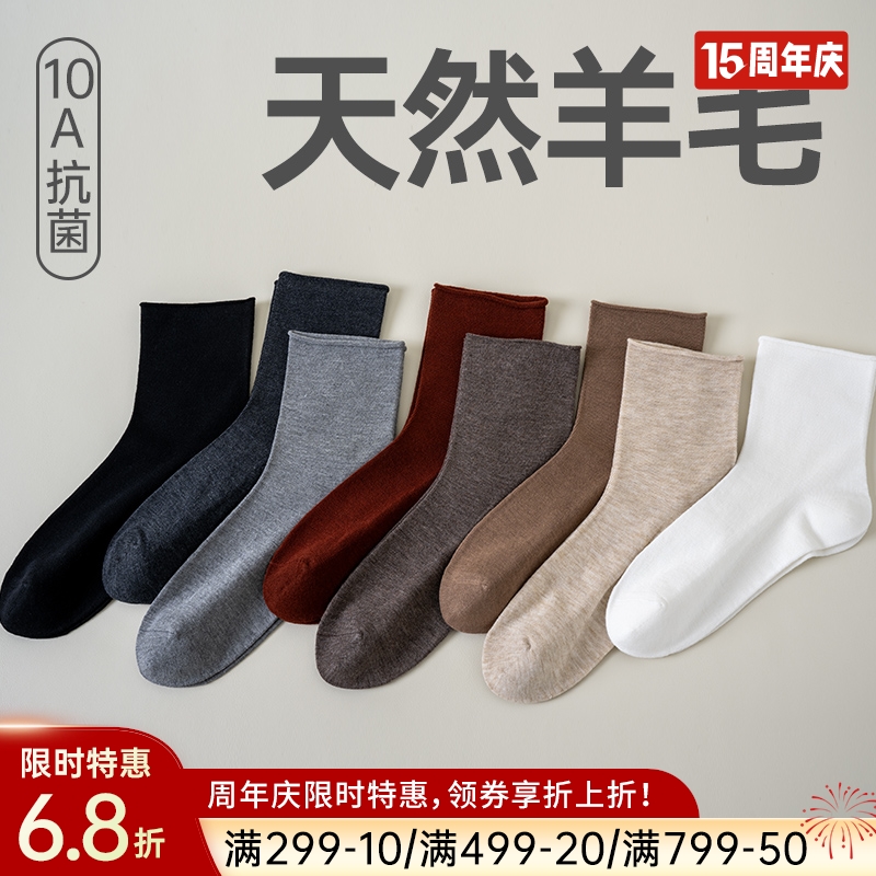女士超薄羊毛中筒袜(素色)
