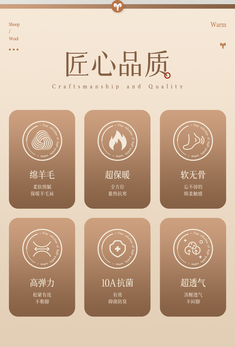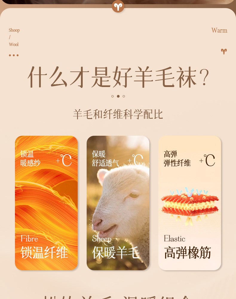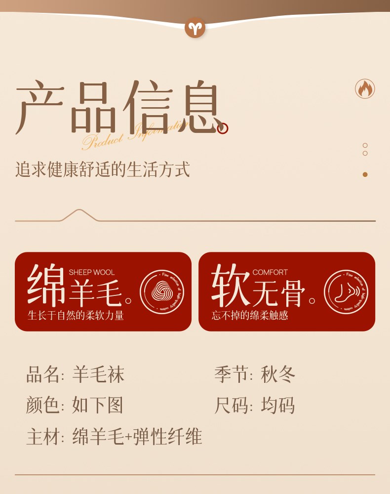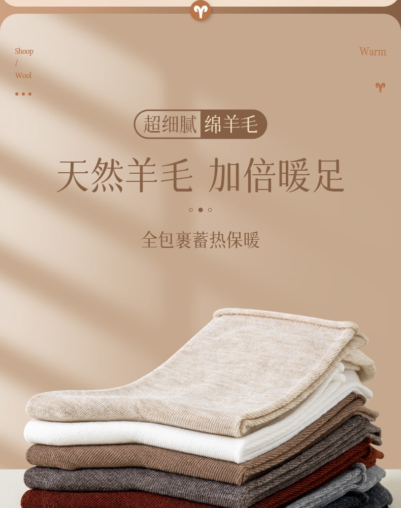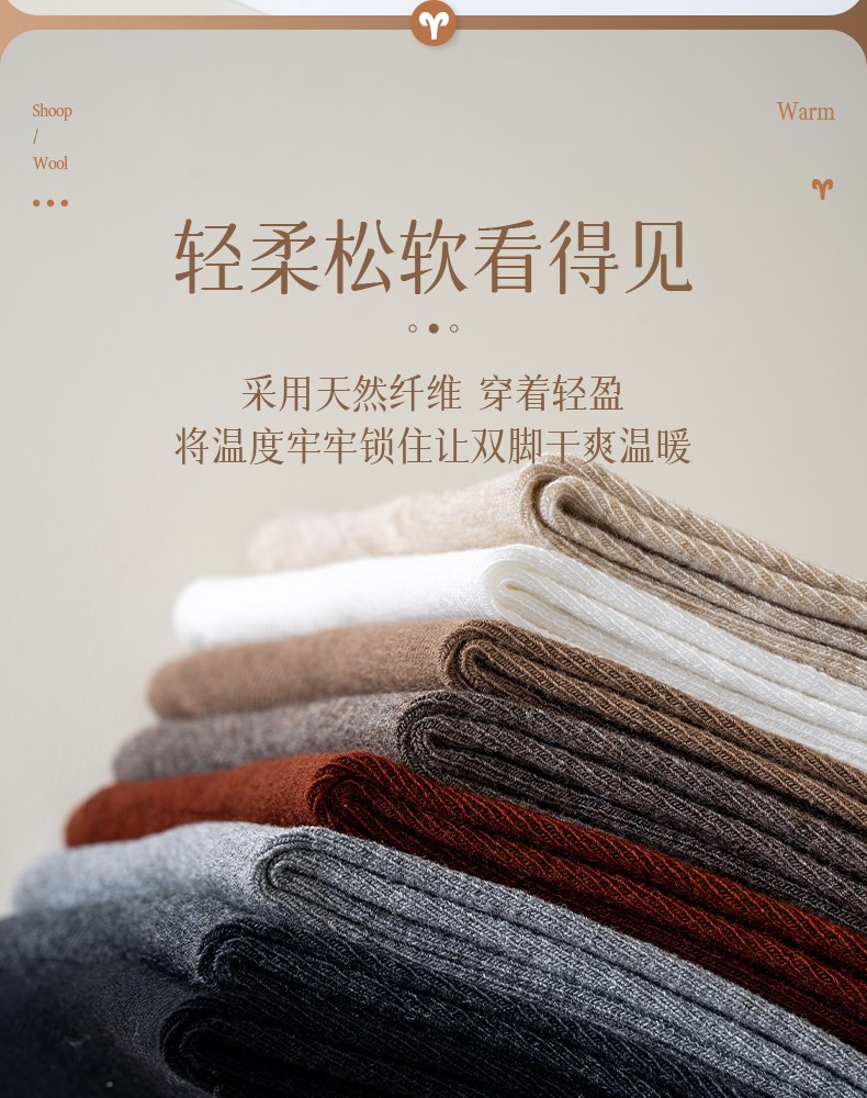 女士超薄羊毛中筒袜(素色)