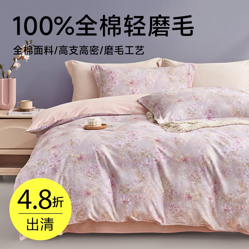 ¥729长绒棉磨毛印花四件套(清雅)
