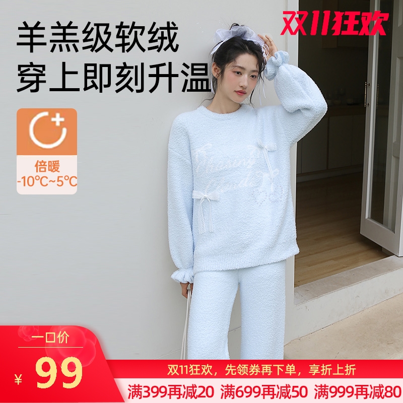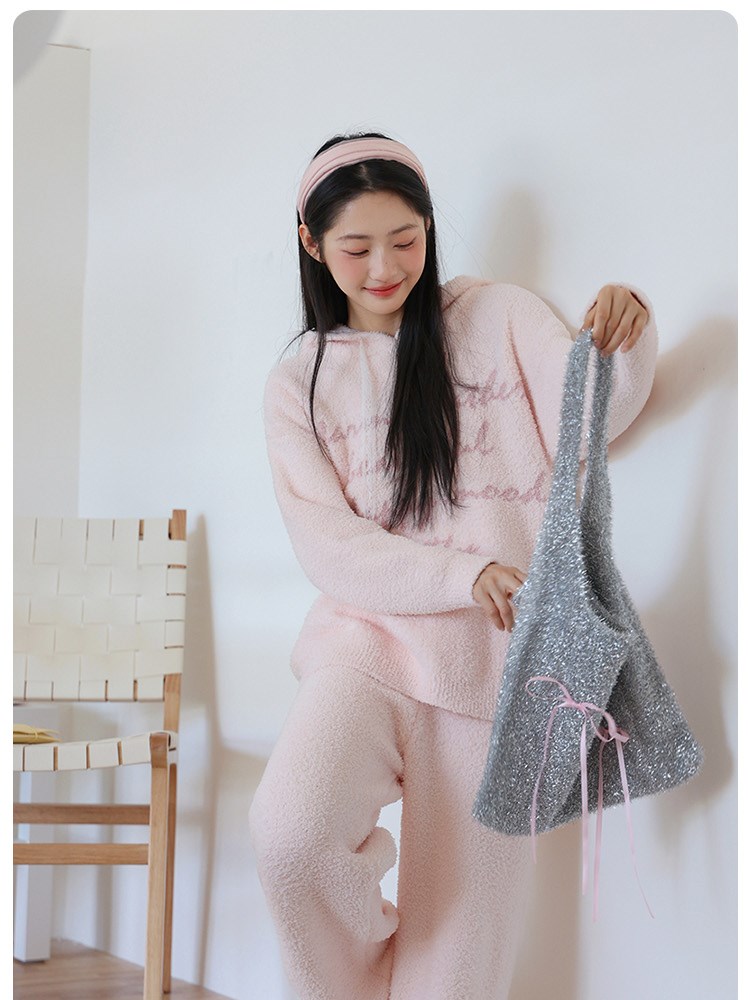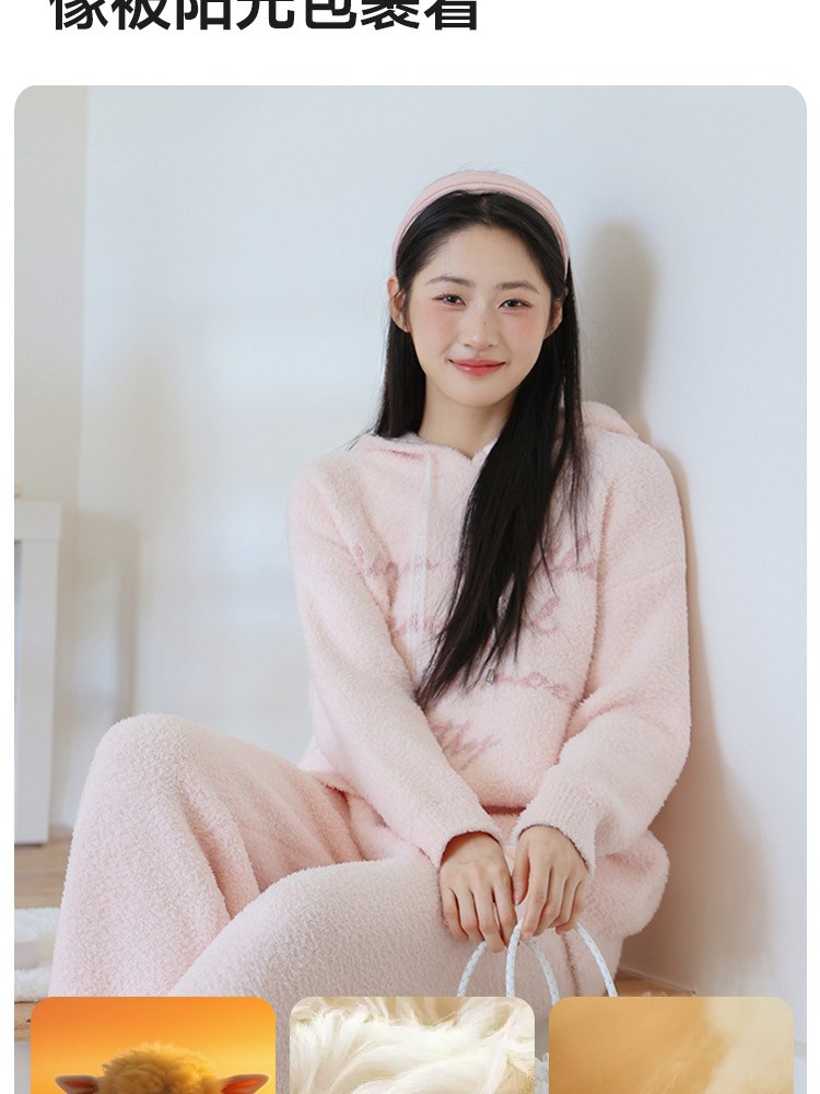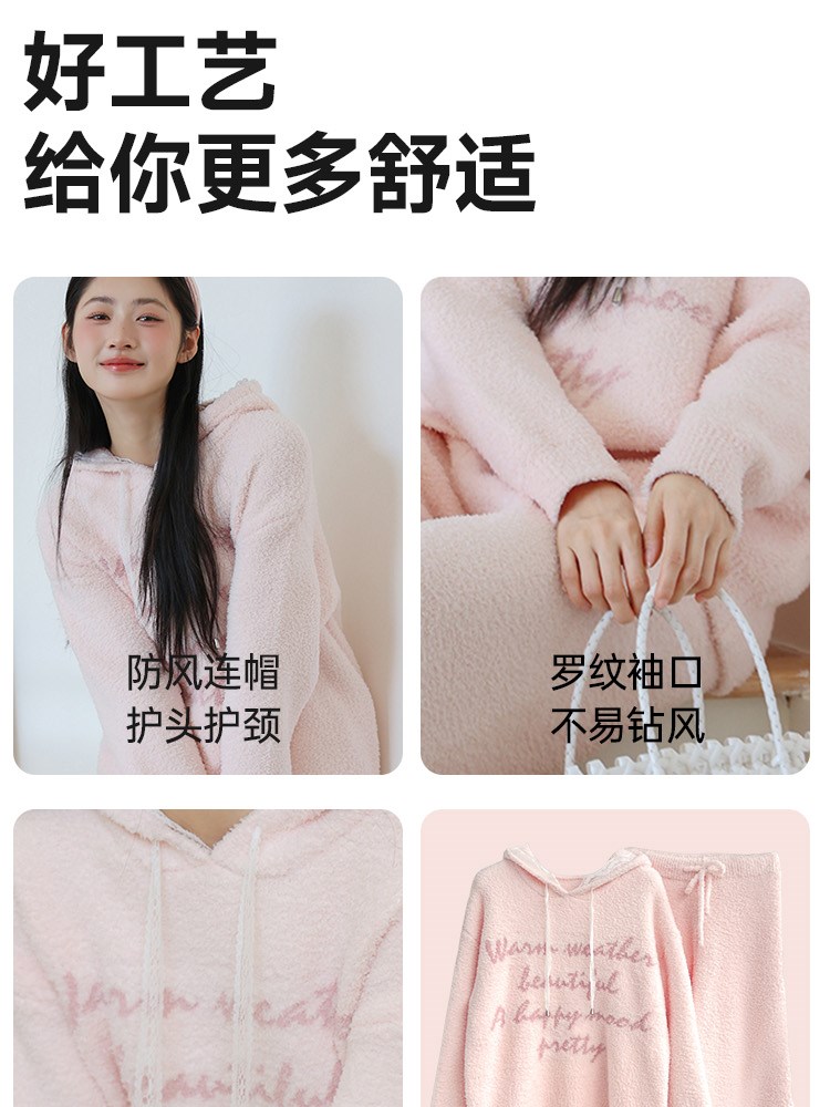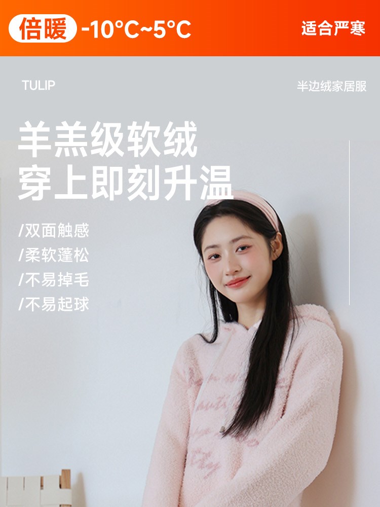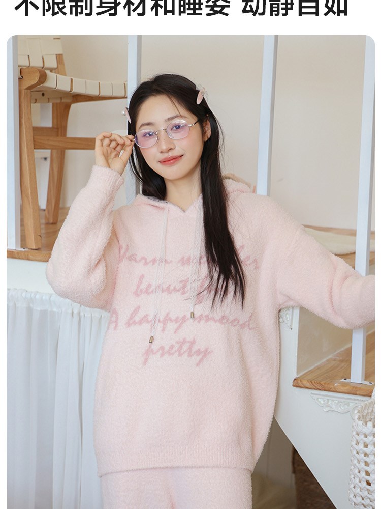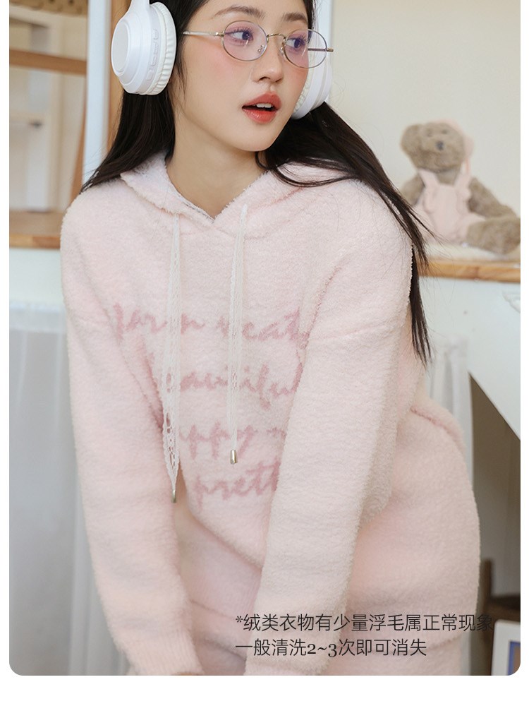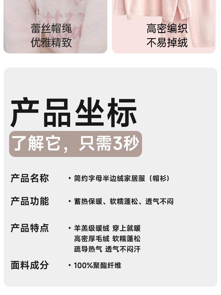 ¥139新简约字母半边绒家居服(帽衫)