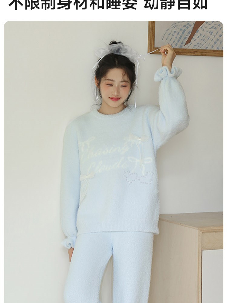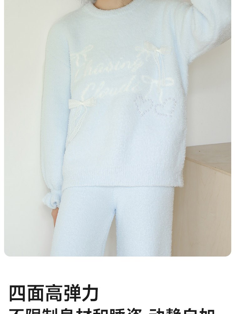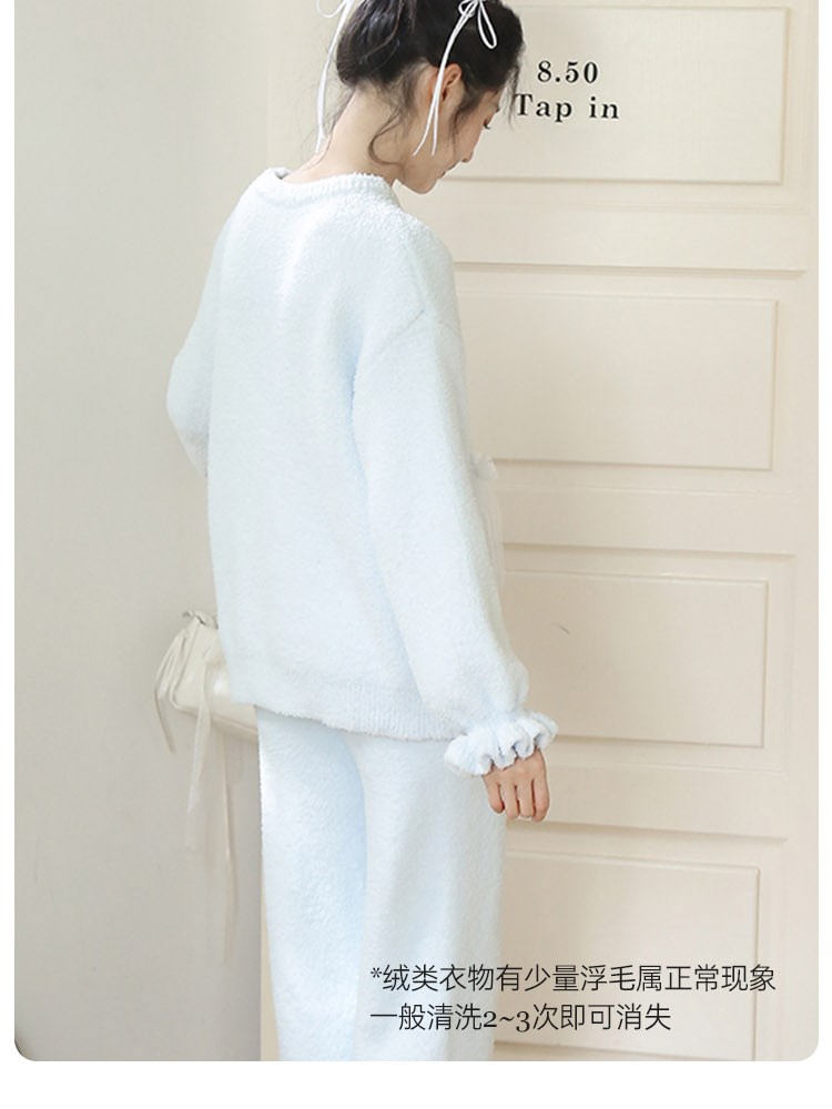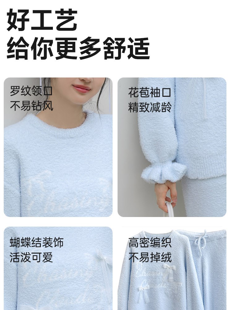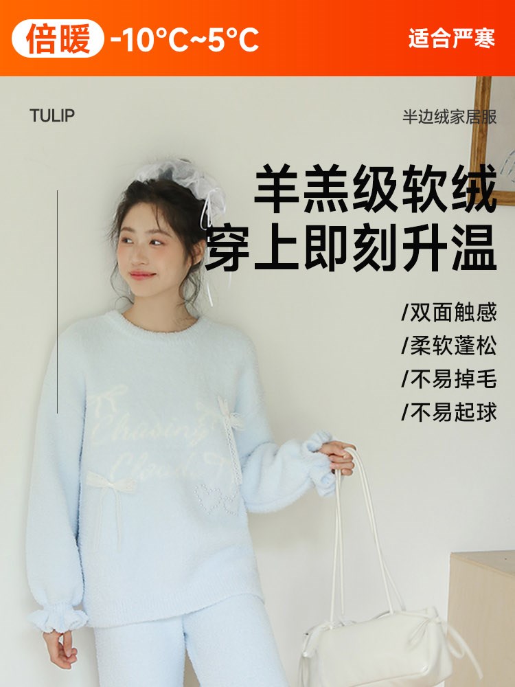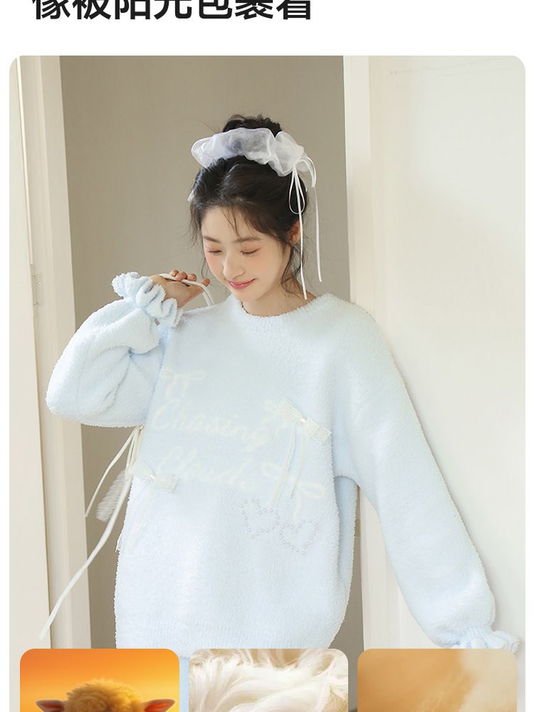 ¥129蝴蝶结半边绒家居服(圆领)