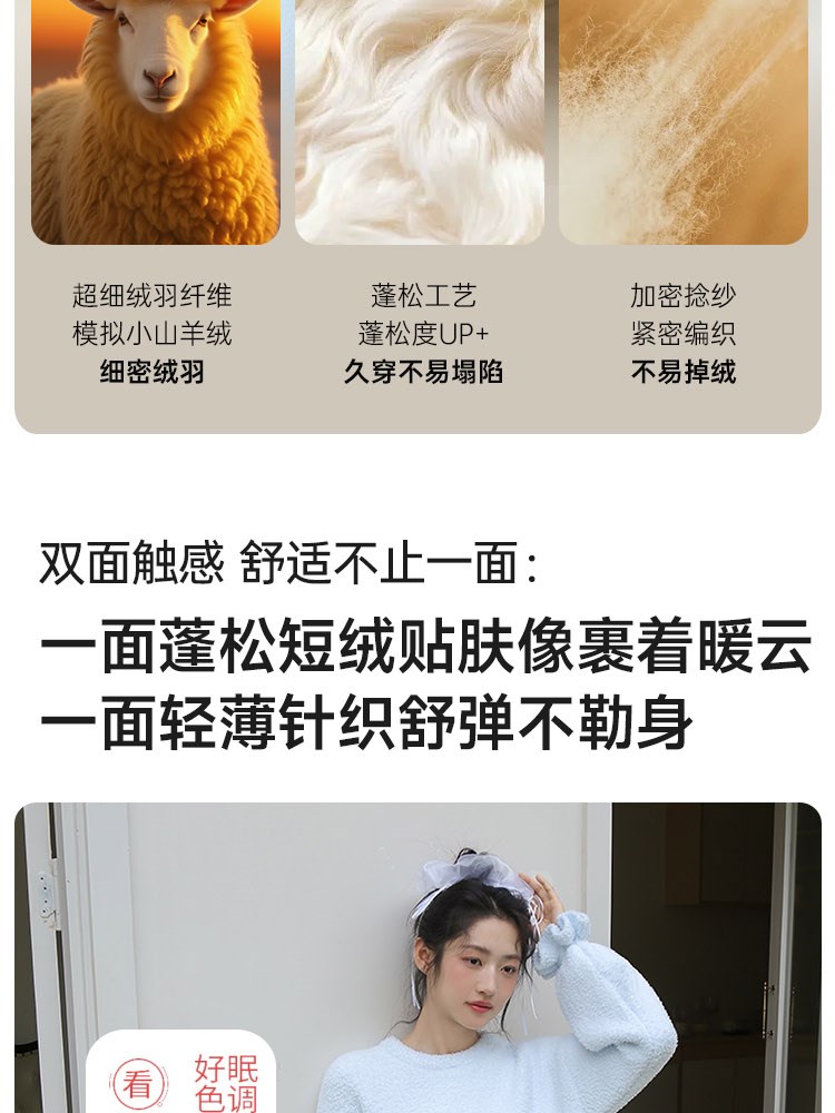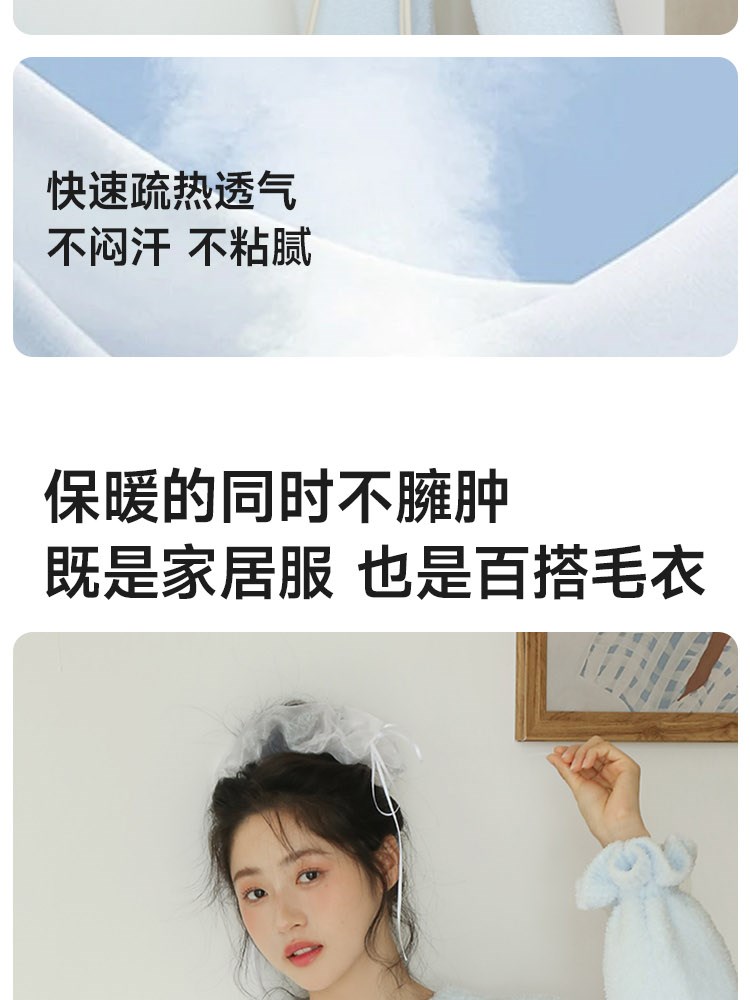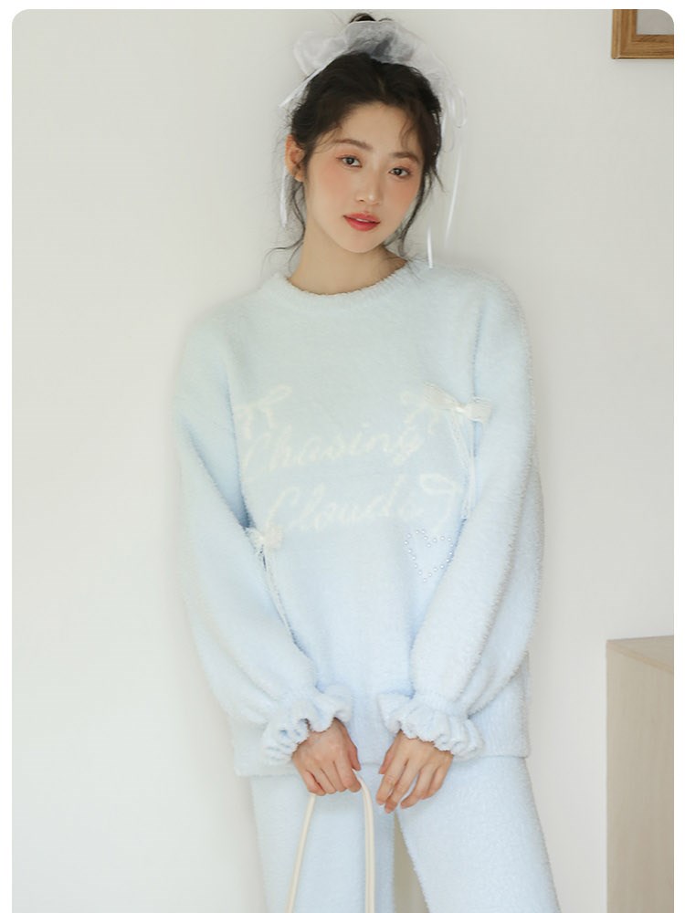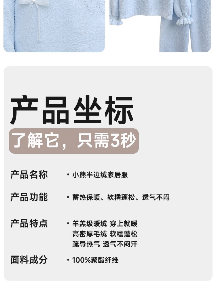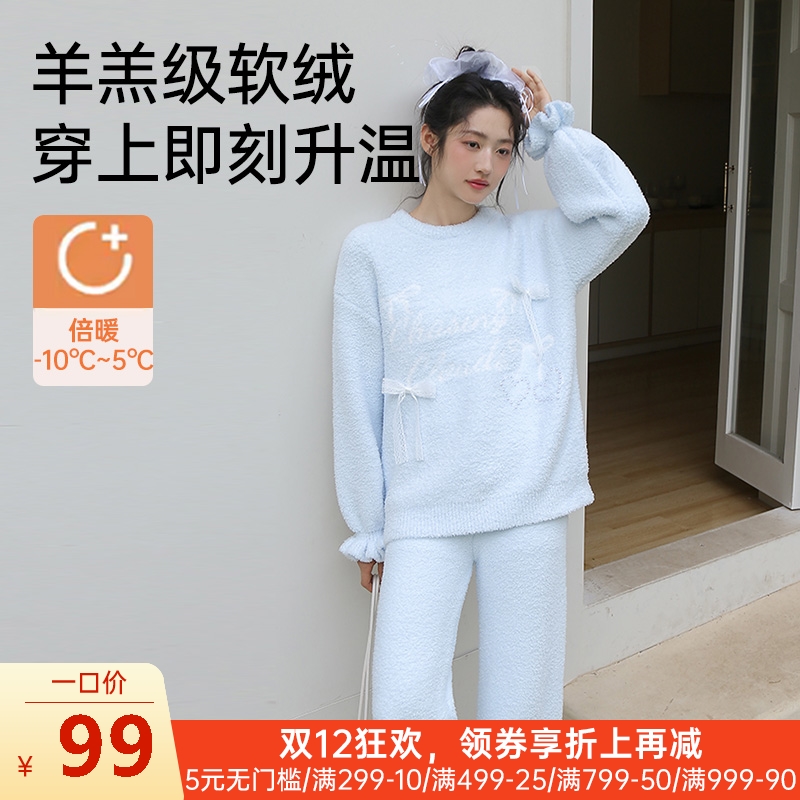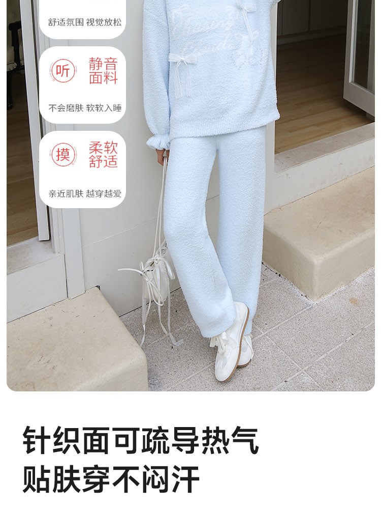 ¥129蝴蝶结半边绒家居服(圆领)