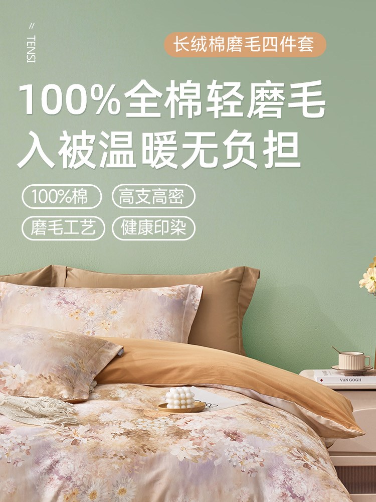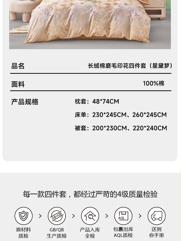 ¥729新长绒棉磨毛印花四件套(星黛梦)