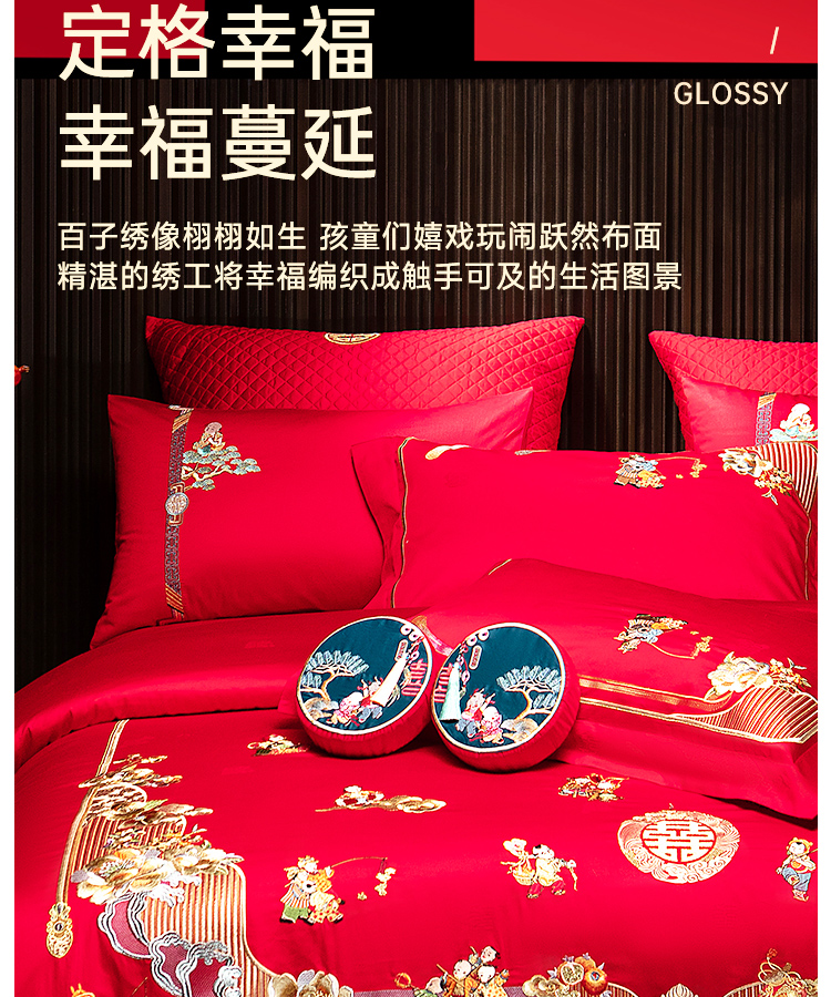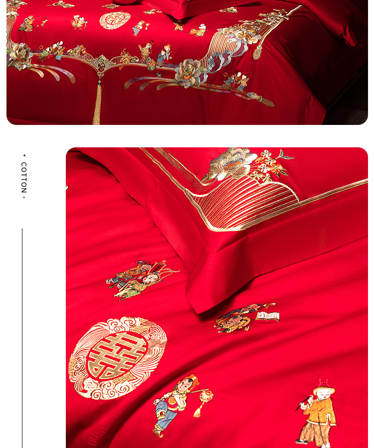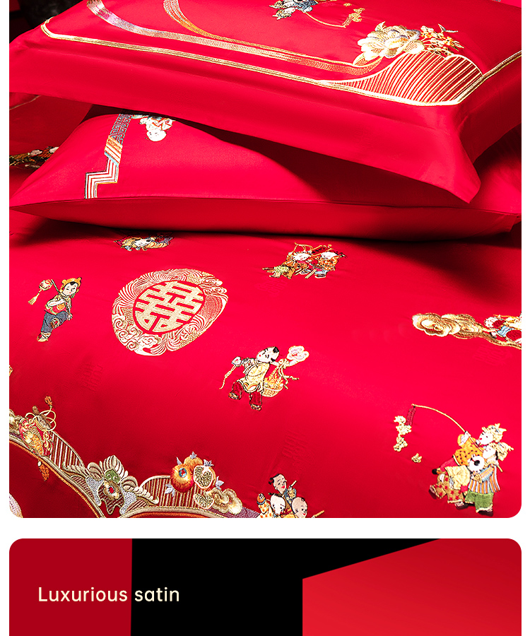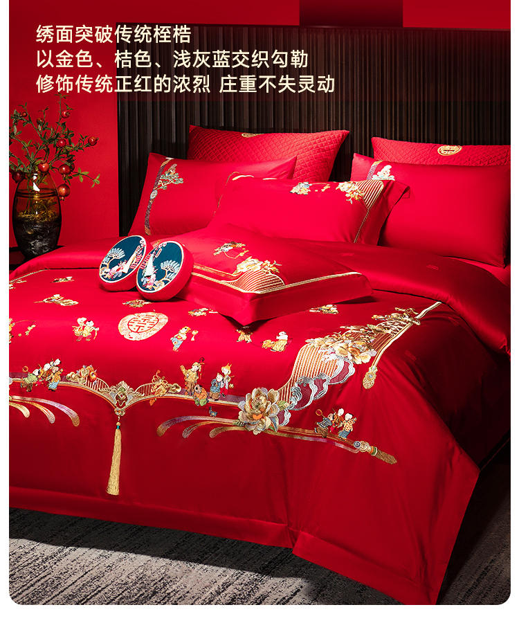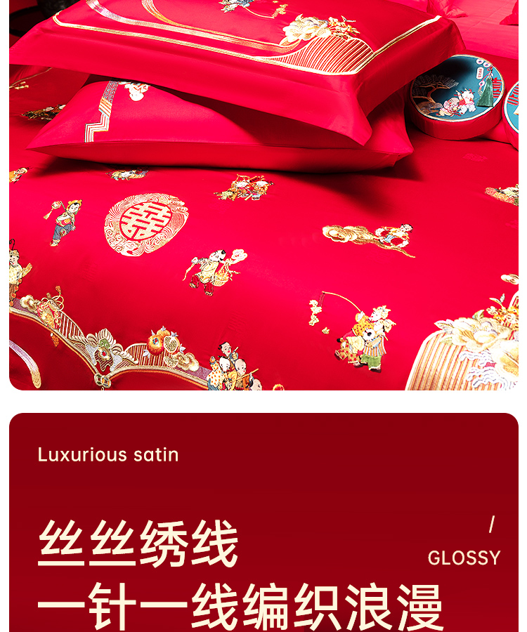 ¥1598新臻品系列全棉刺绣禧嫁四件套(金童华锦)