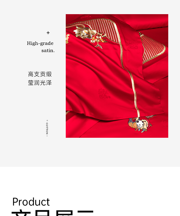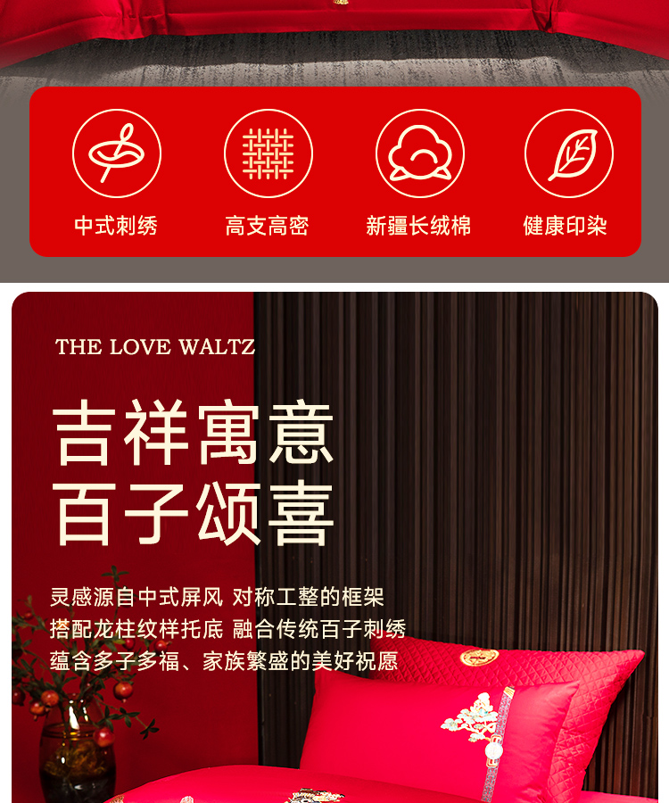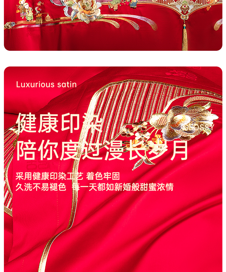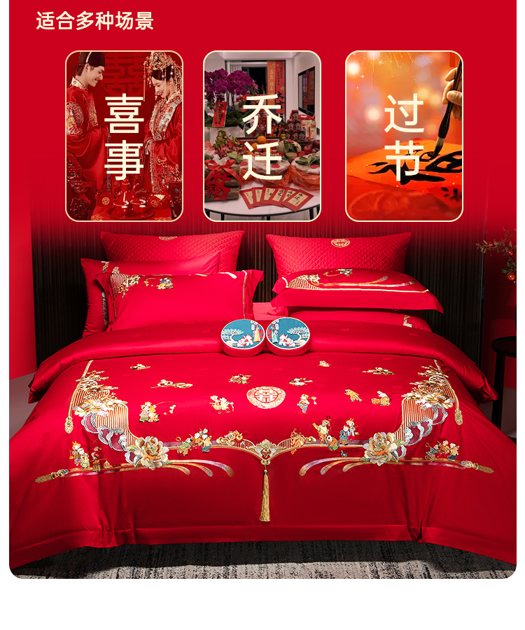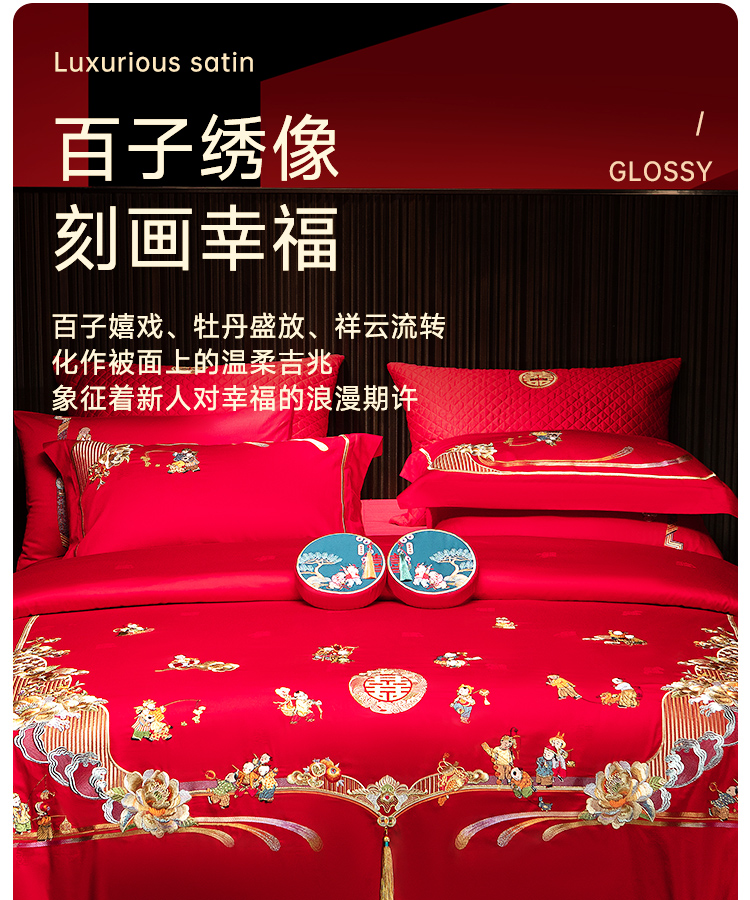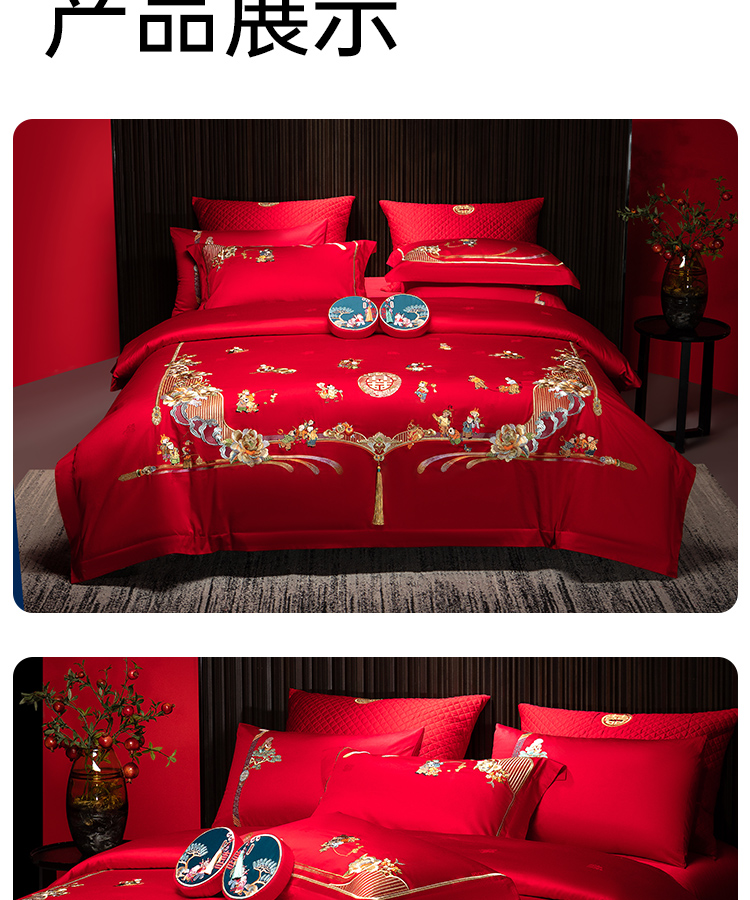 ¥1598新臻品系列全棉刺绣禧嫁四件套(金童华锦)