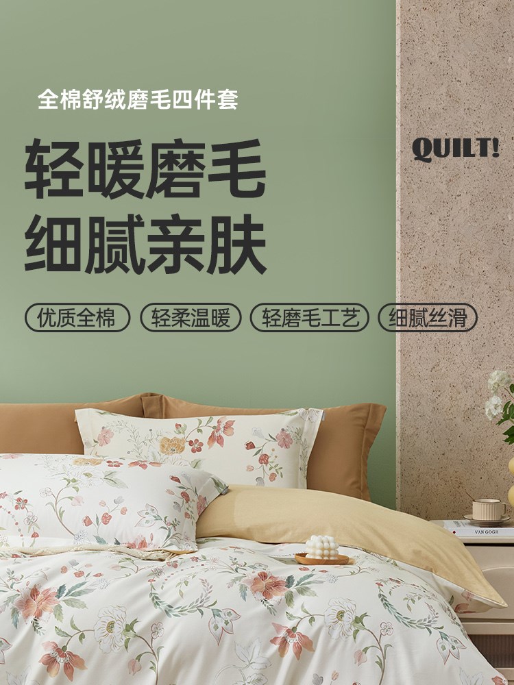¥499新全棉舒绒磨毛四件套(温辰花语)