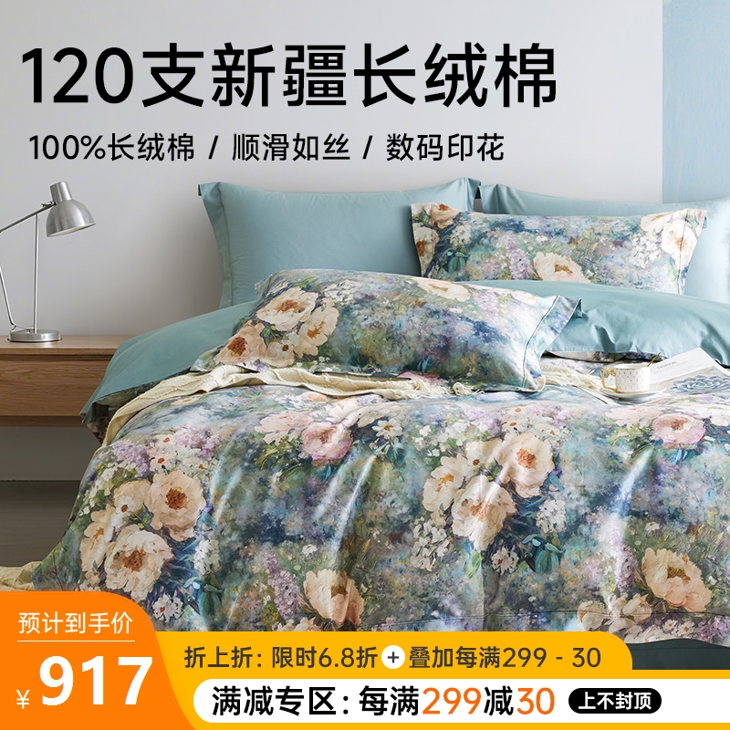 ¥869每满299减30轻奢提花长绒棉加厚四件套(慢时光)