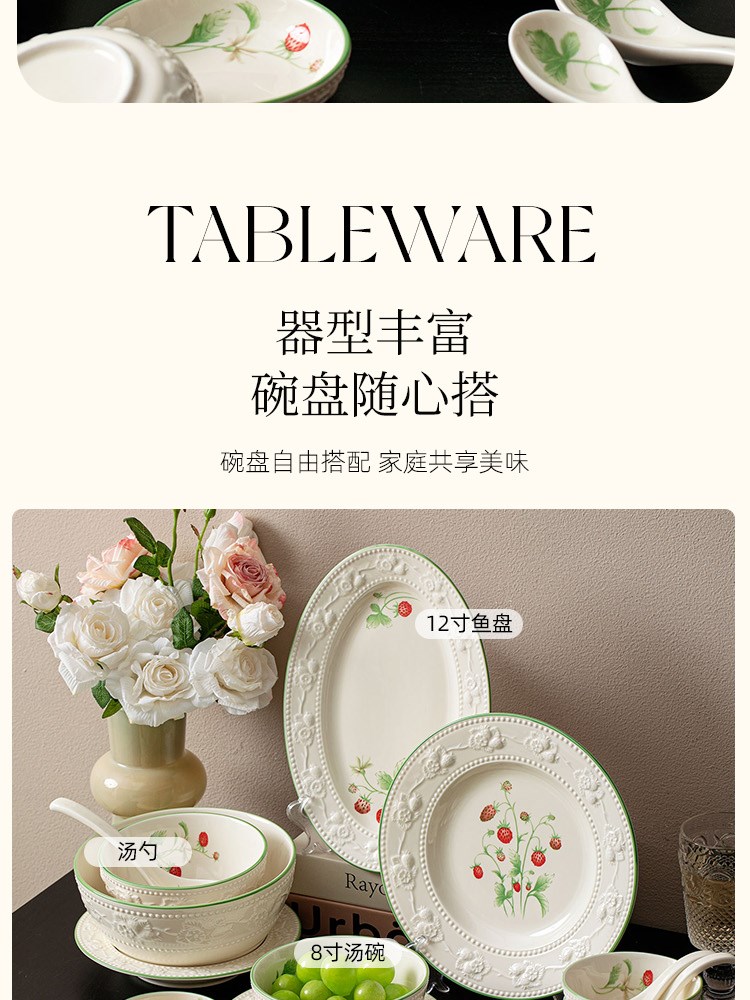 釉下彩法式浮雕餐具(草莓庄园)