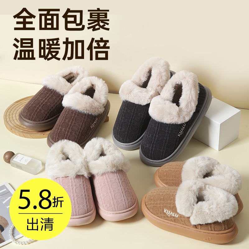 针织毛绒保暖包跟鞋