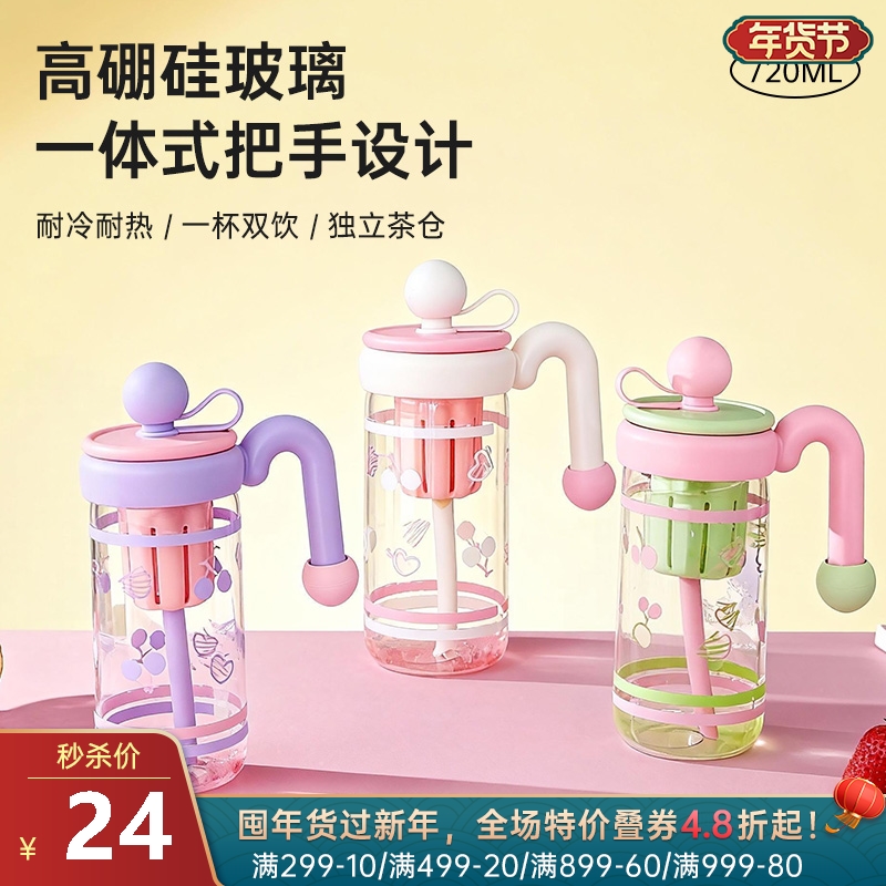 心桃把手耐高温水杯