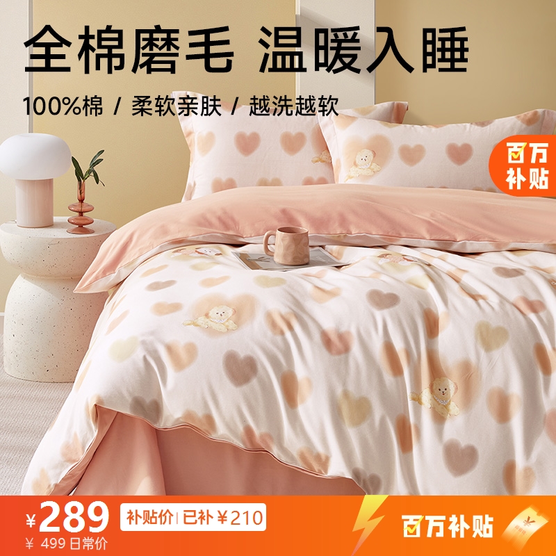 ¥499全棉舒绒磨毛四件套(暖拉)
