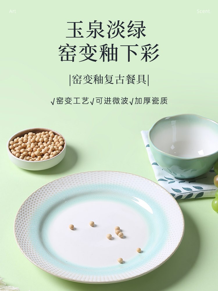 ¥25新窑变釉复古餐具(玉泉淡绿)